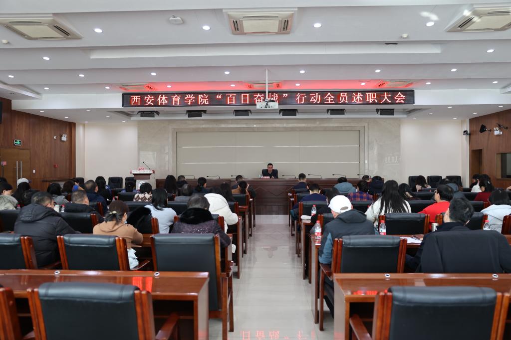 本网讯   1月22日,“百日奋战”行动全员述职大会召开足球学院、运动与健康科学学院专场,校长李富生主持并做总结,党校办主任张军到会。两学院党政班子成员、办公室主任、教学秘书、教师、教练员及辅导员参加述职。