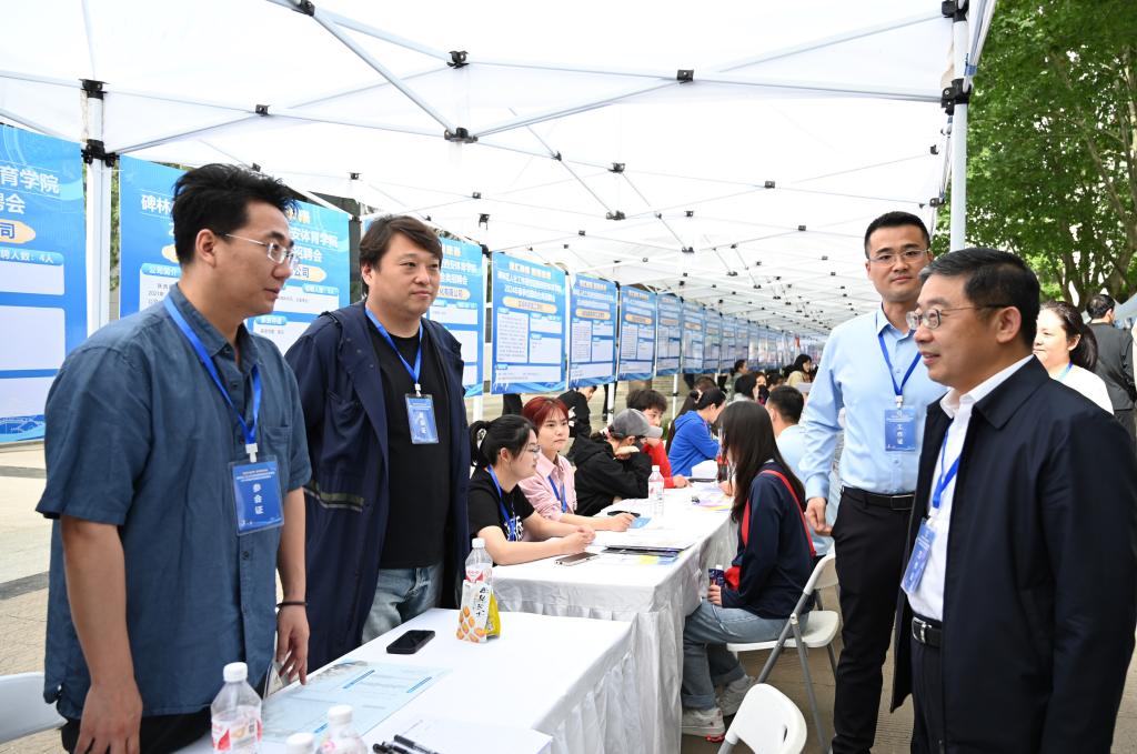 本网讯 为助力我校毕业生高质量就业,4月20日碑林区人社工作进校园暨久久不卡区2024年春季校园综合类招聘会在含光校区教学楼前顺利举行。校党委书记刘子实,校长李富生,副校长张卫国到现场调研。