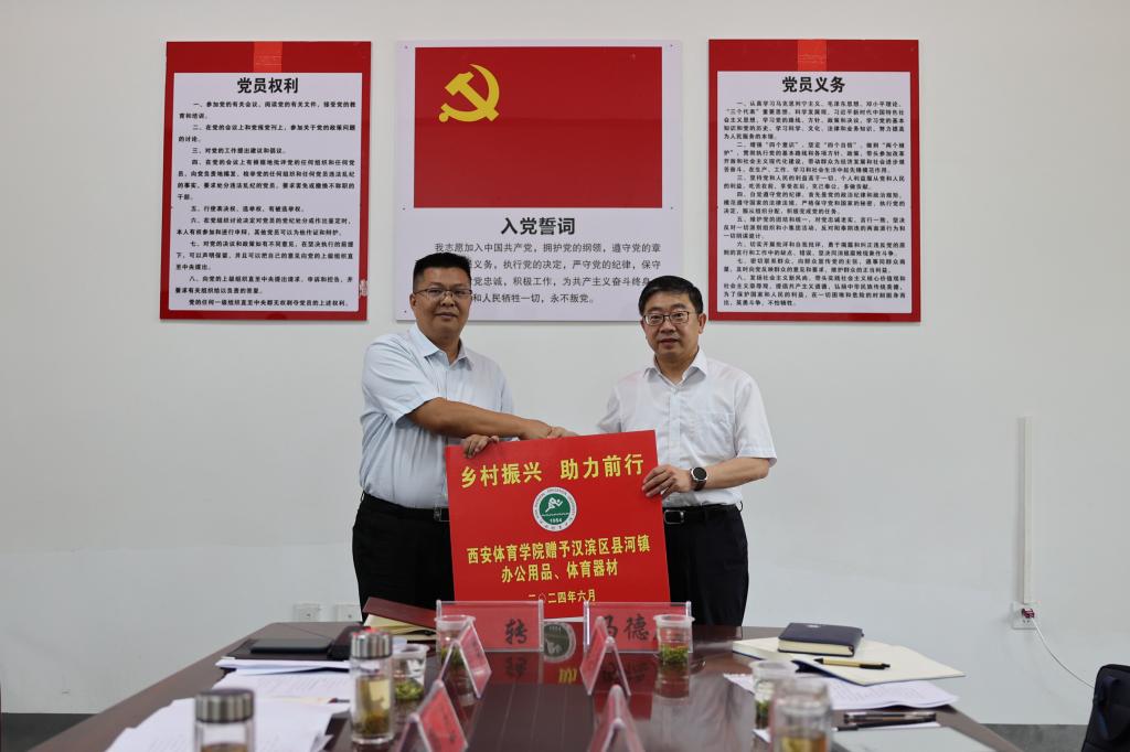 会后,刘子实代表学校向县河镇捐赠了包括电脑、篮球架、餐桌椅等在内的100余件办公物品及体育器材。