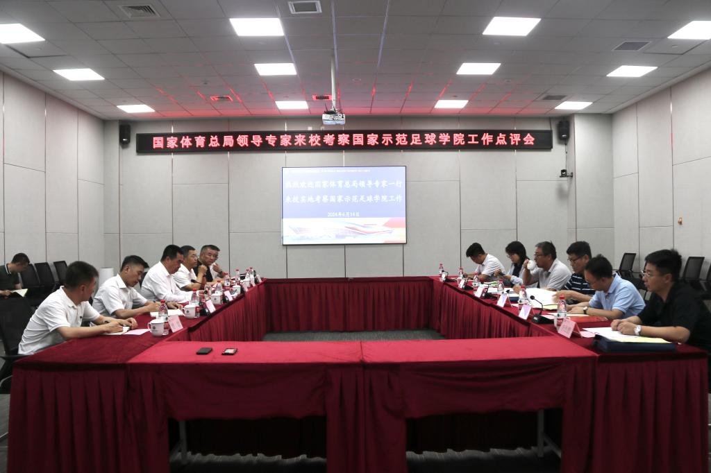 专家组听取了申报国家示范足球学院工作情况汇报。李富生对专家组莅临指导表示热烈欢迎,并从学校与足球学院概况、人才培养质量、师资队伍、科研水平、教学条件、社会服务与科技助力六个方面进行了详细汇报。