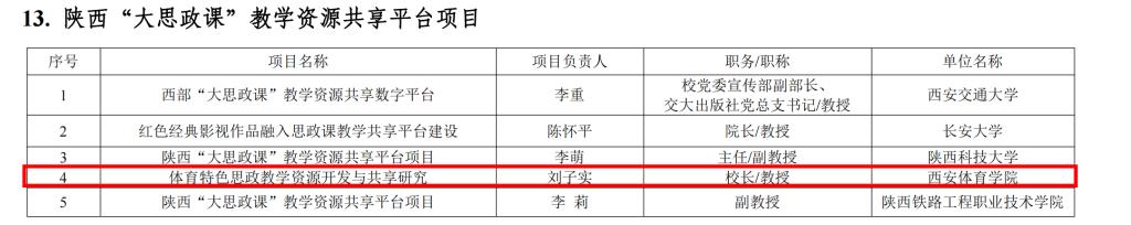 获批陕西省“习近平新时代中国特色社会主义思想‘三进’省级精品课程项目”3项,获批陕西省“大思政课”建设项目2项,获得省级“思政课教学团队标兵”荣誉称号1个,教学能手4个,教学骨干1人。