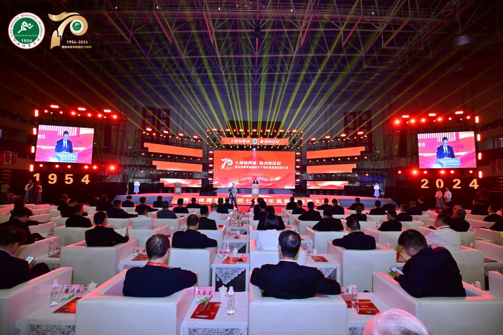 大会在激昂的国歌声中拉开帷幕。陕西省委副书记邢善萍出席并讲话。陕西省副省长徐明非,国家体育总局副局长刘国永,东亚奥协主席杨树安等领导出席。国家体育总局科教司司长陈志宇宣读国家体育总局贺信。校党委书记刘子实主持大会,校长李富生作报告,北京体育大学校长张剑、西北大学党委书记蒋林、日本大阪体育大学理事长野田贤治先后致辞。教师代表、省教学名师苟波教授,学生代表、竞走学院岗拉美多,校友代表、国家体育总局原一级巡视员曹康先后发言,共同表达对西体建校70周年的祝福。