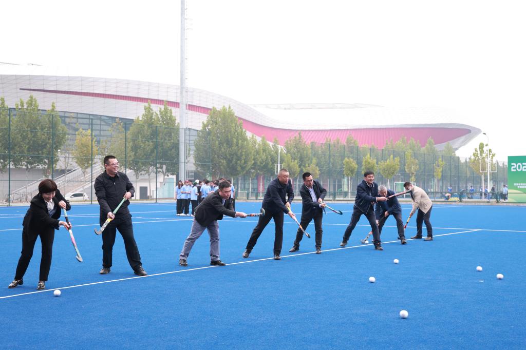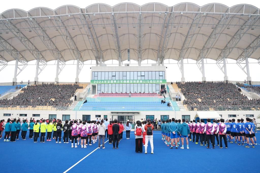 本网讯    10月12日下午,2024年全国青少年曲棍球锦标赛U15组总决赛在我校鄠邑校区开赛。陕西省体育局党组成员、副局长邹军,国家体育总局手曲棒垒中心青少部副部长程桥,中国曲棍球协会副秘书长刘东伟,西安市体育局副局长刘刚,西安市鄠邑区副区长杨仓杏,陕西省体育局青少年体育处处长张兵,陕西省手球曲棍球棒球垒球运动管理中心主任方晓刚,西安市青少年体育学校校长李强和我校校长李富生、副校长张葆欣等出席开幕式。