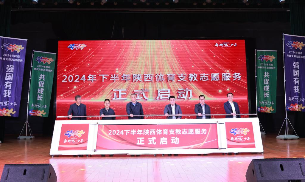 本网讯    10月13日上午,2024年下半年陕西省体育支教志愿服务启动仪式在我校艺术馆大礼堂举行。省体育局党组成员、副局长邹军,省教工委委员、省教育厅副厅长吴振磊,共青团省委副书记惠旋,我校校长李富生、党委副书记张卫国出席并共同启动2024年下半年陕西省体育支教志愿服务活动。由我校牵头来自全省8所高校的优秀体育支教志愿服务队员以及省体育局、教育厅、团省委机关负责同志,陕西体育支教派出8所高校领导,10个支教地市体育局领导、10个支教县区教育体育局领导共同参加启动仪式。