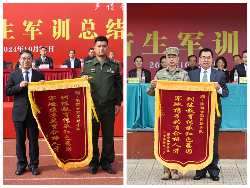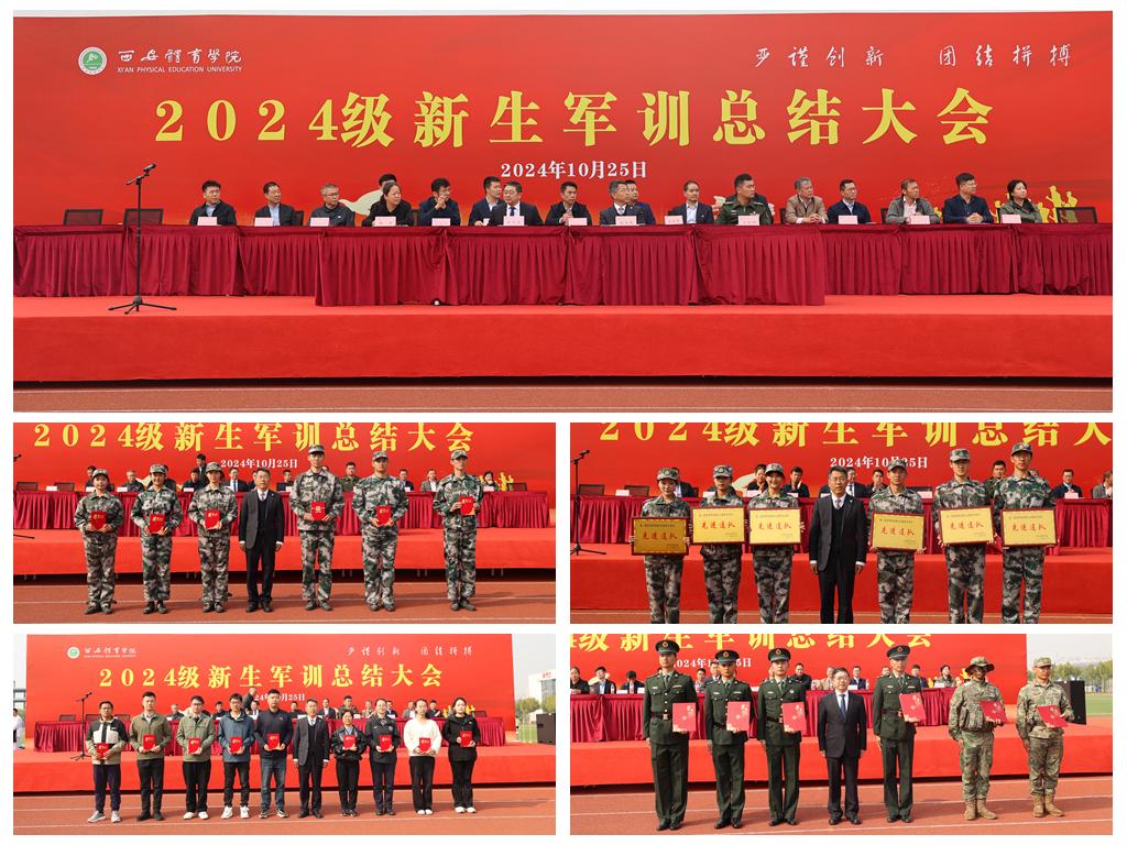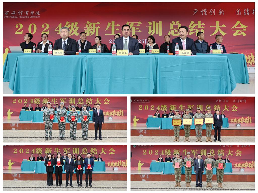 杨芳乾、马海涛在讲话中代表学校党政向承训教官部队全体教官表示感谢,向受表彰的先进连队和个人表示祝贺。杨芳乾在讲话中用六个关键词来表达对新生军训的感受和体会:一是“高兴和欣慰”。为同学们能够传承和弘扬艰苦奋斗精神感到由衷高兴,为教官能够按要求高质量完成军训任务感到欣慰。二是“感恩与珍惜”,希望同学们永远感恩党的教育和培养,珍惜来之不易的生活,以远大理想、扎实学问、创新精神以及强健体魄来回报祖国。三是“希望与祝福”,希望同学们能把军训中养成的良好作风、严明纪律和意志品质贯穿到到今后的学习、生活中去,走好人生每一步,努力成长为德智体美劳全面发展的社会主义建设者和接班人。马海涛对全体新生提出三点希望,一是继续增强国防意识,巩固军训成果。西体学子通过军训锻炼意志,磨砺品格,增强体质,提升素养,希望大家能继续保持严守纪律、团结协作、努力拼搏的作风。二是秉持西体校训,厚植西体精神。同学们生逢其时,重任在肩,希望大家能树立远大理想,学好知识本领,磨砺意志品格,矢志做兴体报国的栋梁。三是适应大学生活,践行西体学子风采。希望大家以全新的姿态融入到学校高质量发展的新征程,用实际行动为强国建设贡献力量。