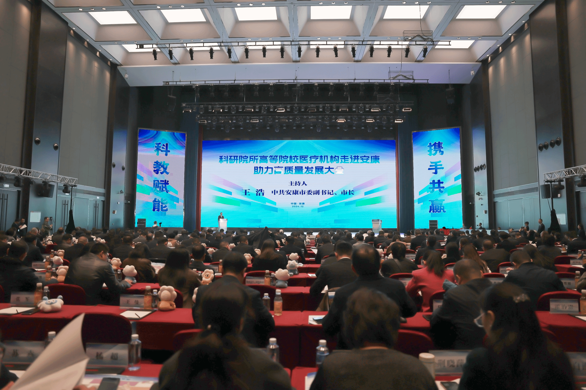 本网讯    12月2日,“科教赋能·携手共赢”科研院所高等院校医疗机构走进安康助力高质量发展大会在安康国际会议中心召开。安康市委书记武文罡,省科技厅厅长姜建春,省教育厅副厅长申雪峰、省卫生健康委副主任余立平致辞,中国科学院院士张涛出席并发言。中国科学院西安分院、中国药科大学、西北妇女儿童医院等110家科研院所、高等院校、医疗机构领导出席。校长李富生受邀参会,并作为陕西省高等院校唯一代表发言。