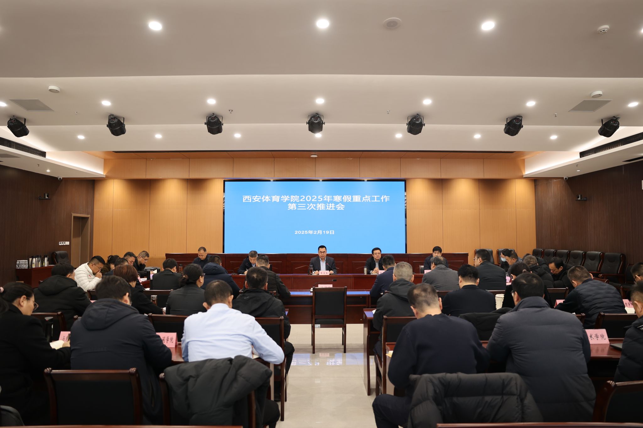 本网讯 2月19日上午,校长李富生主持召开我校2025年寒假重点工作第三次推进会。党委副书记张卫国、副校长张葆欣、副校长毕德鹏、副校长雷振华出席。各职能部门负责人和二级学院(部、校)党政负责人参加会议。