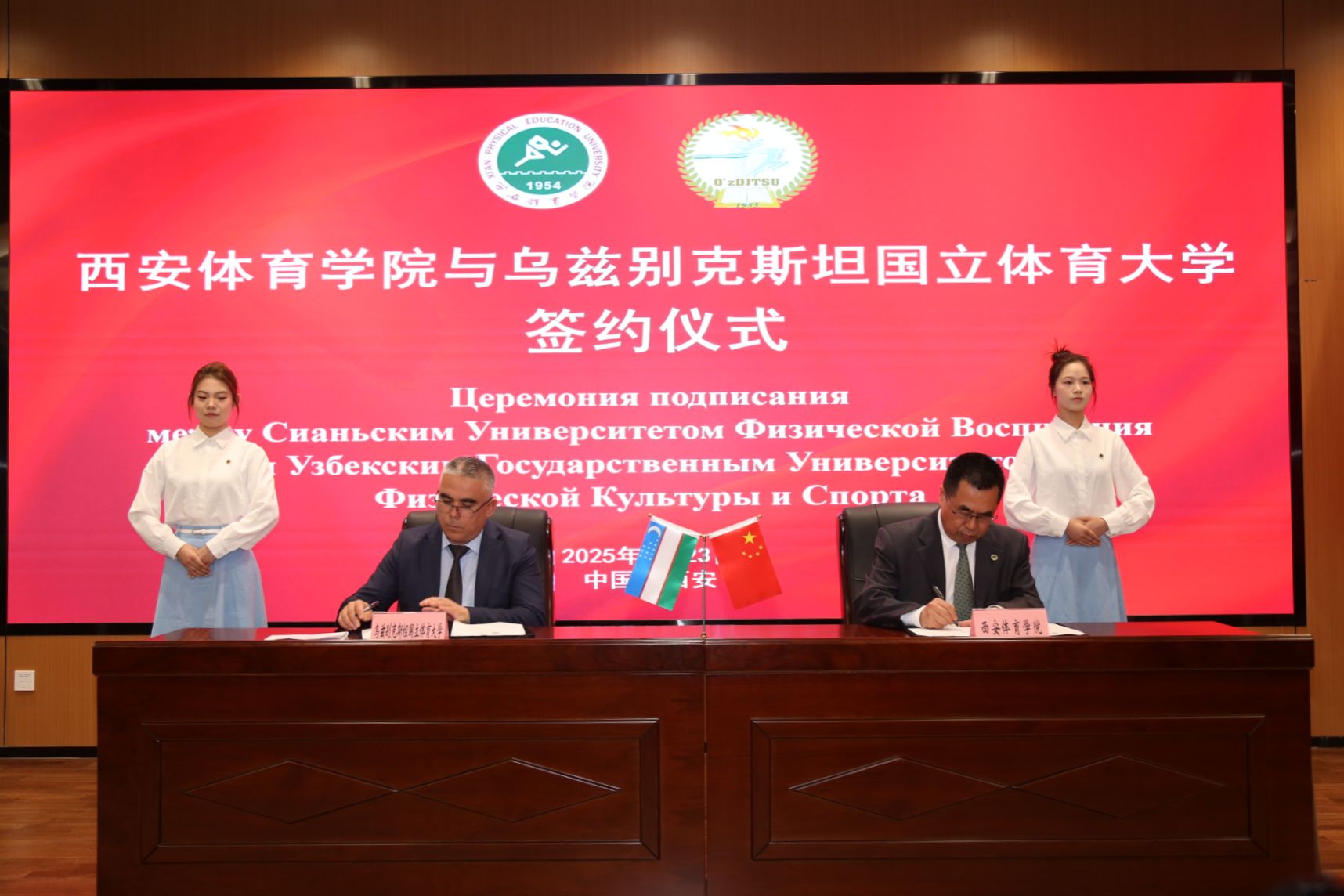 乌兹别克斯坦体育部专业体育教育机构事务管理司司长阿尔济库洛夫·穆库姆·乌拉洛维奇、乌兹别克斯坦国立体育大学国际交流负责人尤尔多舍夫·穆赫里丁·卡莫利丁乌利、乒乓球队主教练内马图拉耶夫·伊克波尔·伊廖斯·乌格利,以及两校师生代表参加此次活动。