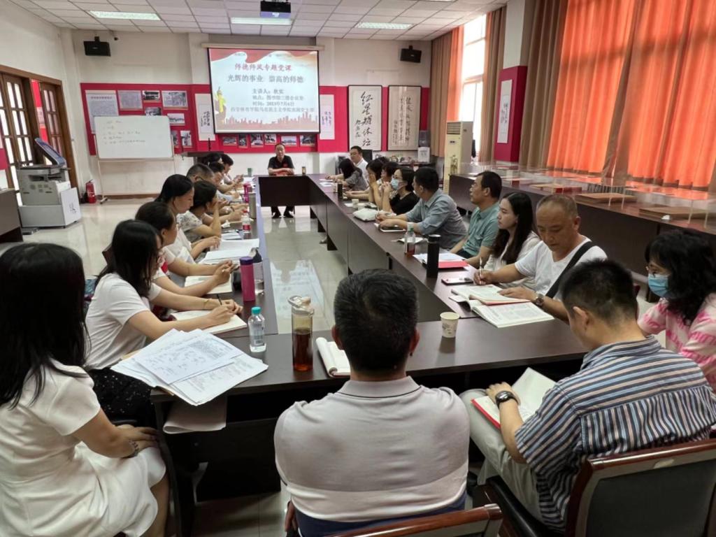 直属党支部书记秋实同志为全体马克思主义学院教师上师德师风专题党课。围绕党和国家对师德师风建设的总体部署和对思政课教师的具体要求进行了系统地讲解,从思想上进一步凝聚了共识,明确了方向,推动了马克思主义学院的师德师风建设的针对性和有效性。